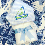 Our everykid towels are ideal for older children and also make a wonderful "grow into" newborn baby gift. They feature a terry lined hood, which is sewn to a long side of the towel. Perfect for bath, beach or pool time; up to 8 years old, 27" x 54"