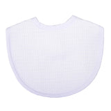 This popular sized bib is one of our best sellers! It has an easy hook and loop closure and is double-sided. The front is pique and the back thick, cotton terry. The thickness of our bibs keeps babies' clothes clean and the terry back can be used for wiping babies' mouths and any other feeding mishaps.