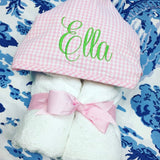 Our everykid towels are ideal for older children and also make a wonderful "grow into" newborn baby gift. They feature a terry lined hood, which is sewn to a long side of the towel. Perfect for bath, beach or pool time; up to 8 years old, 27" x 54"