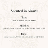 * Clean and airy Classic fragrance with notes of lily of the valley, sweet musk and sandalwood