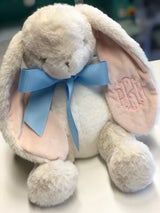 Huggable, luggable and simply adorable. Luscious cream fur, warm white tummy, tail and muzzle. 12 inches. Surface spot clean. Big floppy ears are perfect for personalization.