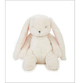 Huggable, luggable and simply adorable.  Luscious eggnog cream fur, warm white tummy, tail and muzzle. 16 inches. Surface spot clean. Big floppy ears are perfect for personalization.